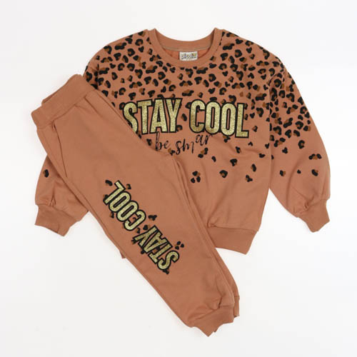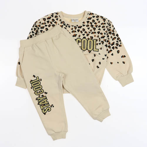 Базовый   костюм для девочки из тонкого футера без начеса . Комплект одежды состоит из свитшота  и брюк с леопардовым принтом. Такой костюм станет отличным дополнением гардероба любой девочки как для повседневной носки, так и для занятий спортом, бегом,  а также будет уютным, мягким домашним нарядом в прохладное время года!