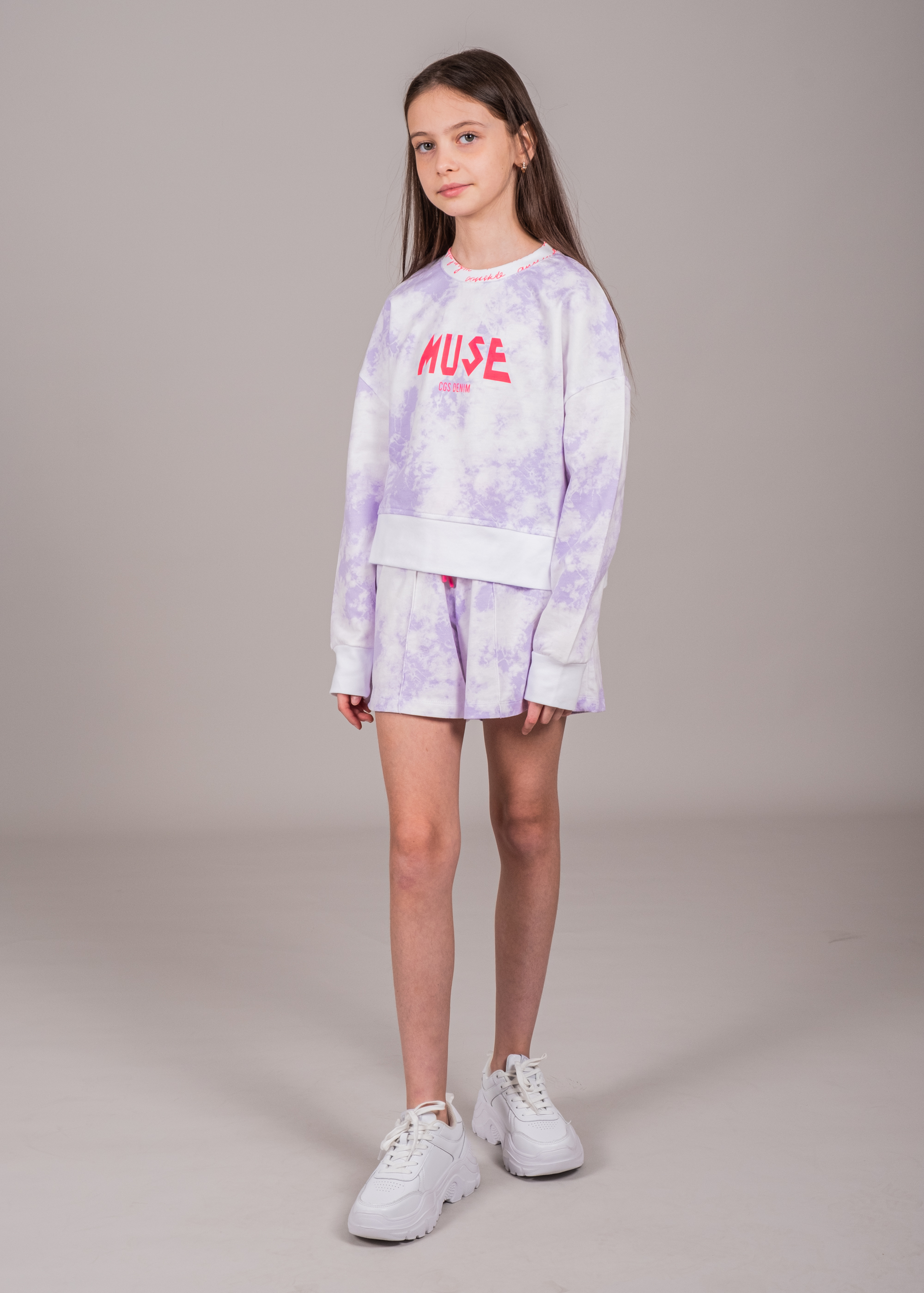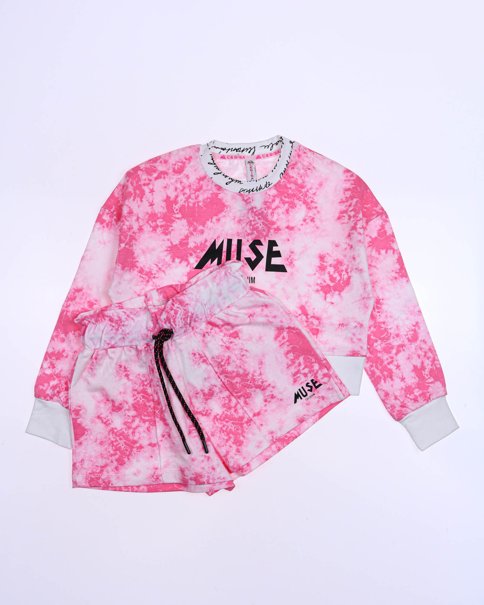 "Трикотажный костюм из хлопка, выполнен из футера и украшен принтом тай дай.
