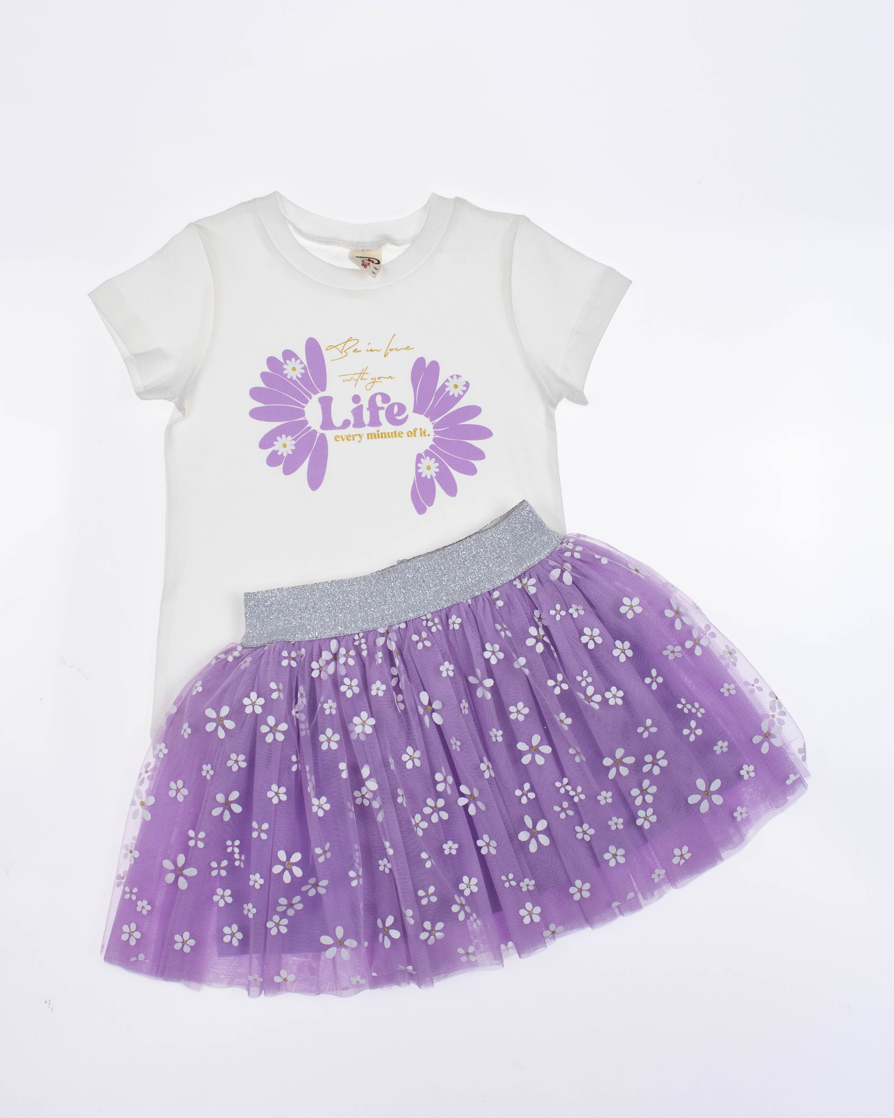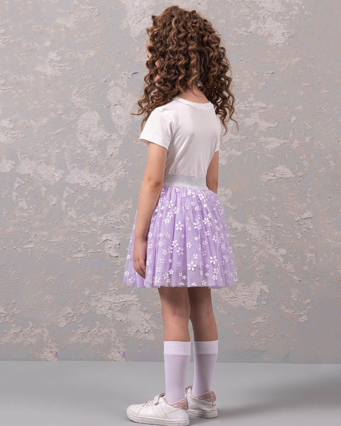 Нарядный костюм DMB для девочек оптом является уникальным предложением на рынке детской моды. Он произведен в Турции, известной своим качеством и безупречным стилем. На груди футболки расположен принт, который придает еще больше индивидуальности этому наряду. Юбка этого костюма также привлекает внимание. Она имеет широкую блестящую резинку, которая обеспечивает идеальную посадку на талии. Юбка сама по себе пышная и держит форму благодаря дополнительной юбке из сетки и хлопковому подъюбнику. Такое решение не только придает объем юбке, но и создает особый эффект при движении.