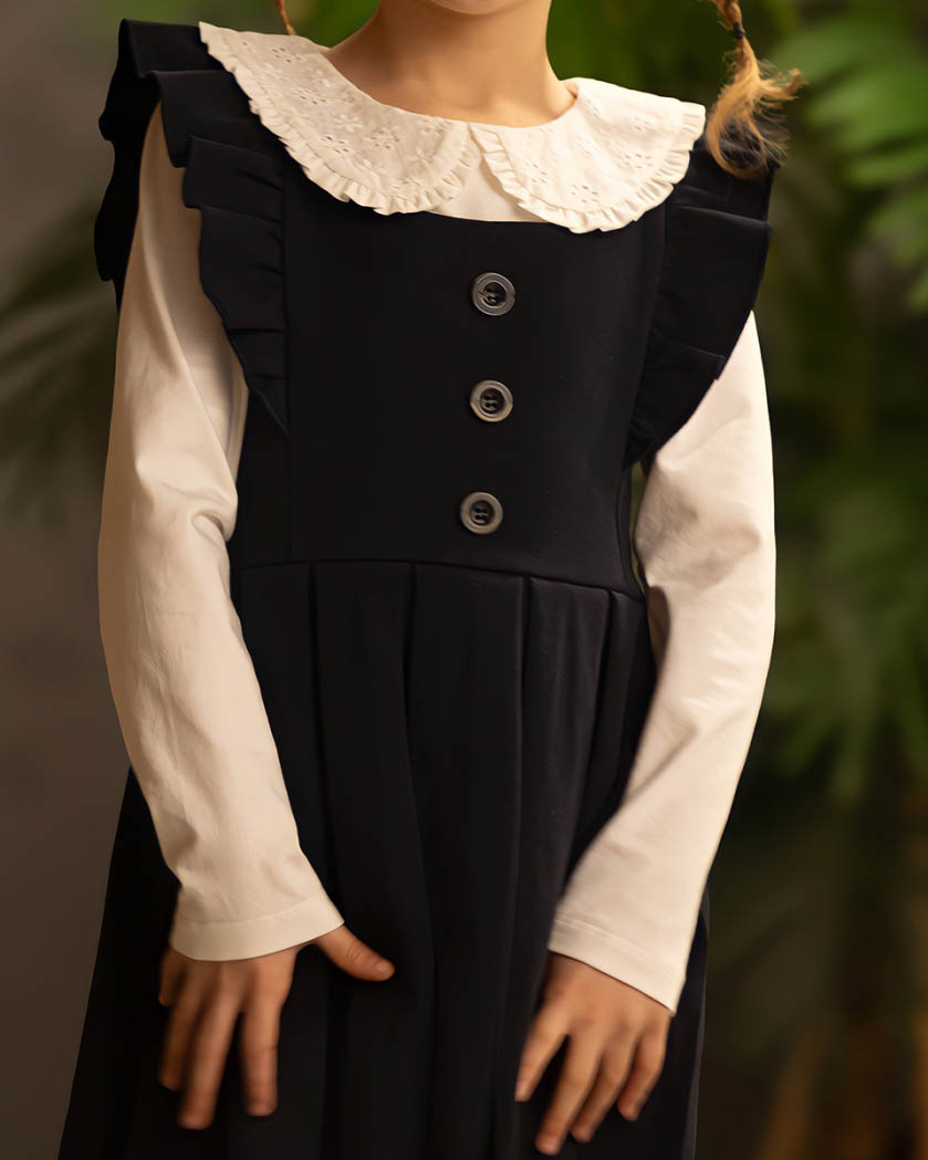 Школьный сарафан DMB для девочки оптом– это самый удобный и практичный вариант одежды. Сарафан  выполнен из плотного трикотажа. Благодаря своему удобству и универсальности сарафан приглянулся многим школьницам, и данный элемент одежды плотно вошел в новые стандарты. Сейчас благодаря разнообразию модных решений это изделие стало хитом.