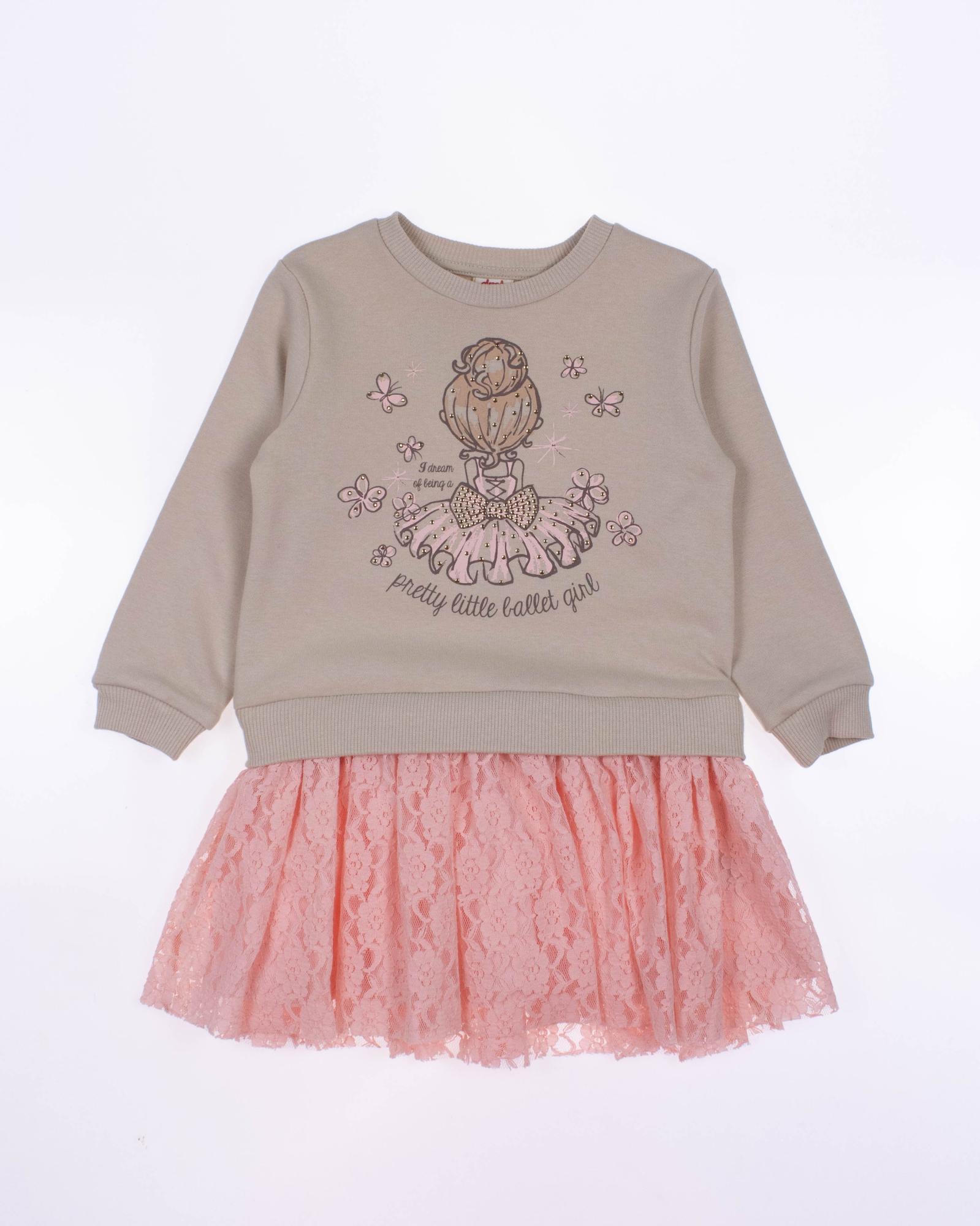 Детское платье для девочки DMB оптом, производства Турция. Бренд представляет собой стильную и модную одежду, идеально подходящую для маленьких модниц. Платье выполнено из высококачественного хлопка, обеспечивая комфорт и приятные ощущения на коже. Это платье имеет уникальный принт, расположенный на передней части, что придает ему элегантный и модный вид. Верхняя часть платья изготовлена из трикотажного материала футер (петля),  который обеспечивает хорошую посадку и комфорт при движении. Изюминкой  платья является его юбка, которая придает платью легкость и воздушность. Платье DMB оптом - отличный выбор для покупки для тех, кто одновременно ценит качество, стиль и комфорт. Оно идеально подойдет как для повседневного ношения, так и для особых случаев, таких как праздники или торжества.