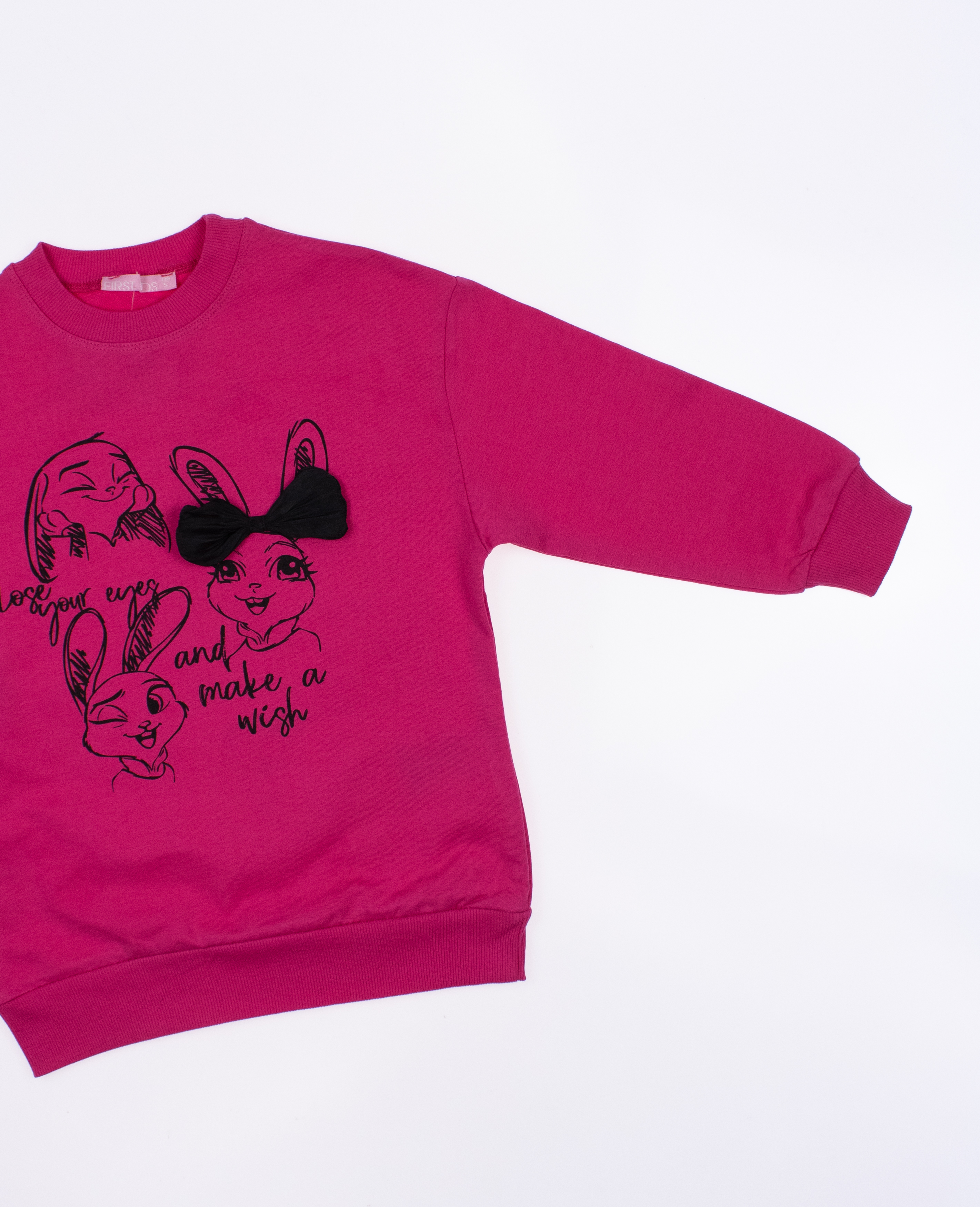 Свитшот FIRST KIDS для девочки оптом, выполнен из трикотажа футер (петля). Этот свитшот обладает всеми необходимыми качествами, чтобы обеспечить комфорт и стиль вашей  моднице. Округлая горловина, манжеты на рукавах и на поясе обеспечивают дополнительную защиту от холода. Приобрести свитшот FIRST KIDS для девочки оптом - это отличная возможность предложить вашим клиентам качественный и стильный продукт. Вы можете быть уверены, что он будет отлично продаваться и приносить вам прибыль. Купить свитшоты оптом из Турции - значит выбрать надежного производителя и быть уверенным в качестве продукции.