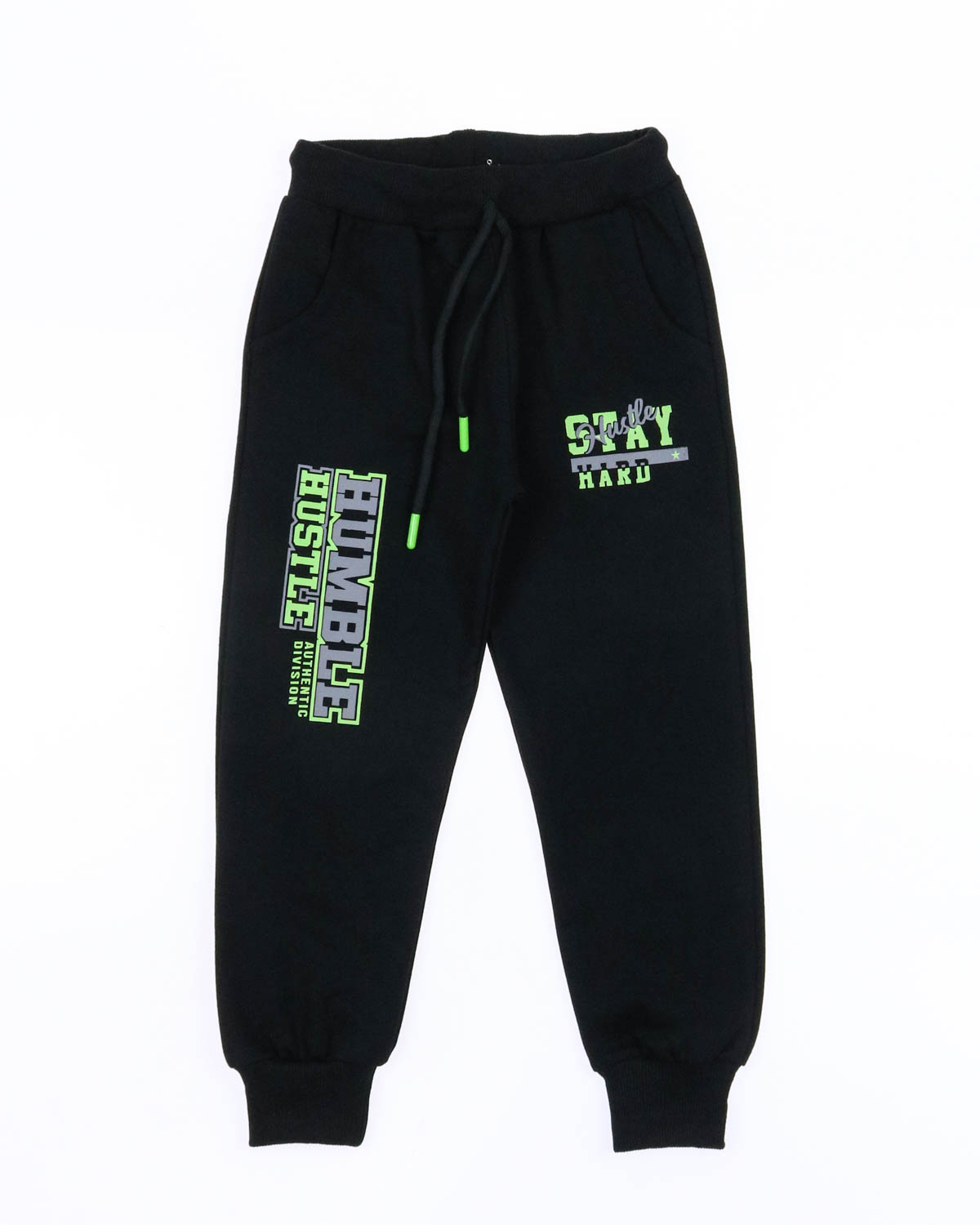 Однотонные брюки  из трикотажа для мальчика, прямого силуэта, на притачном поясе с эластичной тесьмой и регулируемым шнуром спереди. Два боковых кармана, по низу брюк цельнокроеные манжеты.