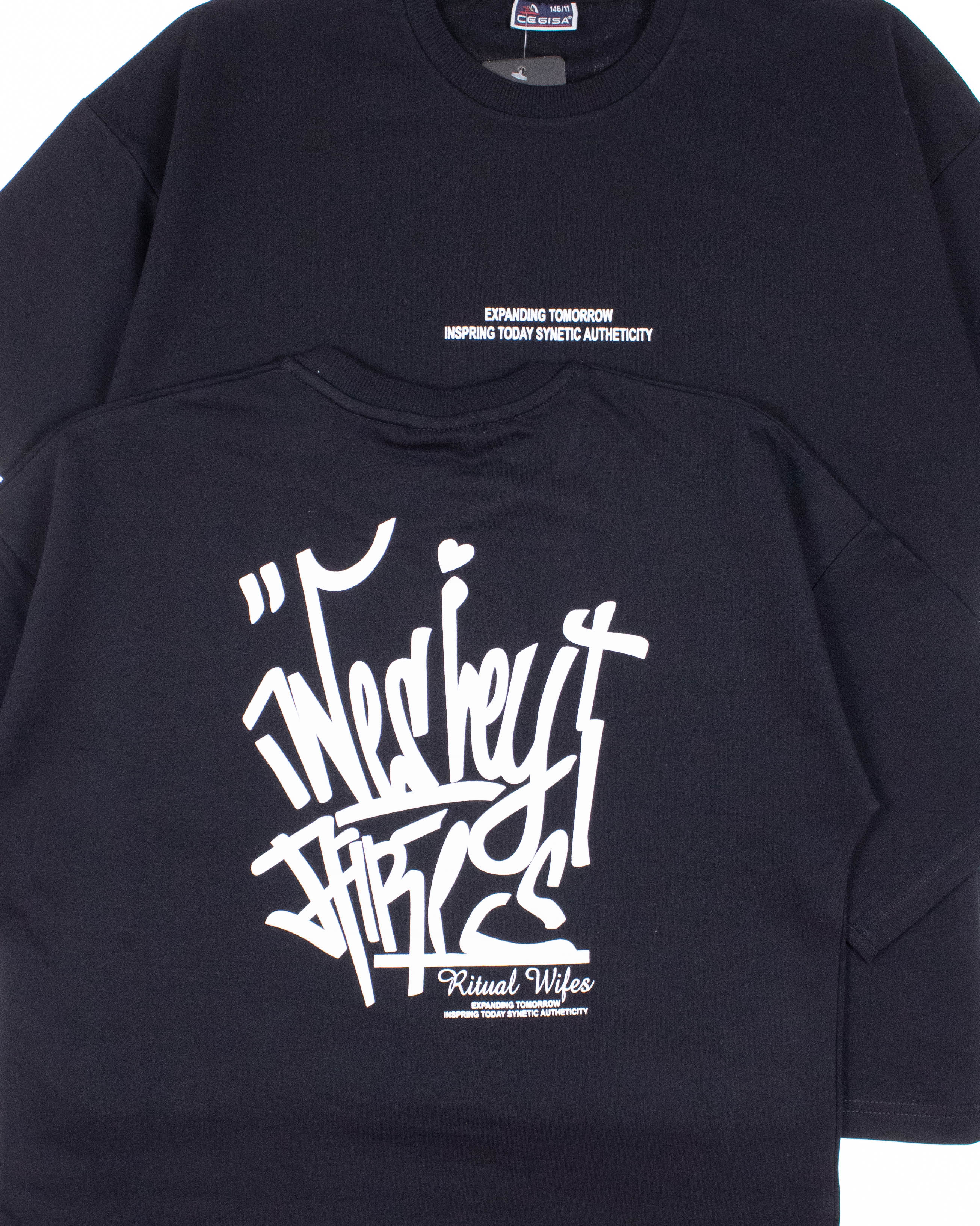 Однотонная футболка  Cegisa для мальчика оптом. Футболка прямого кроя, линия плеча спущена, с двух сторон нанесен принт. Модель выполнена  из 100% хлопкового трикотажа футер (петля).
