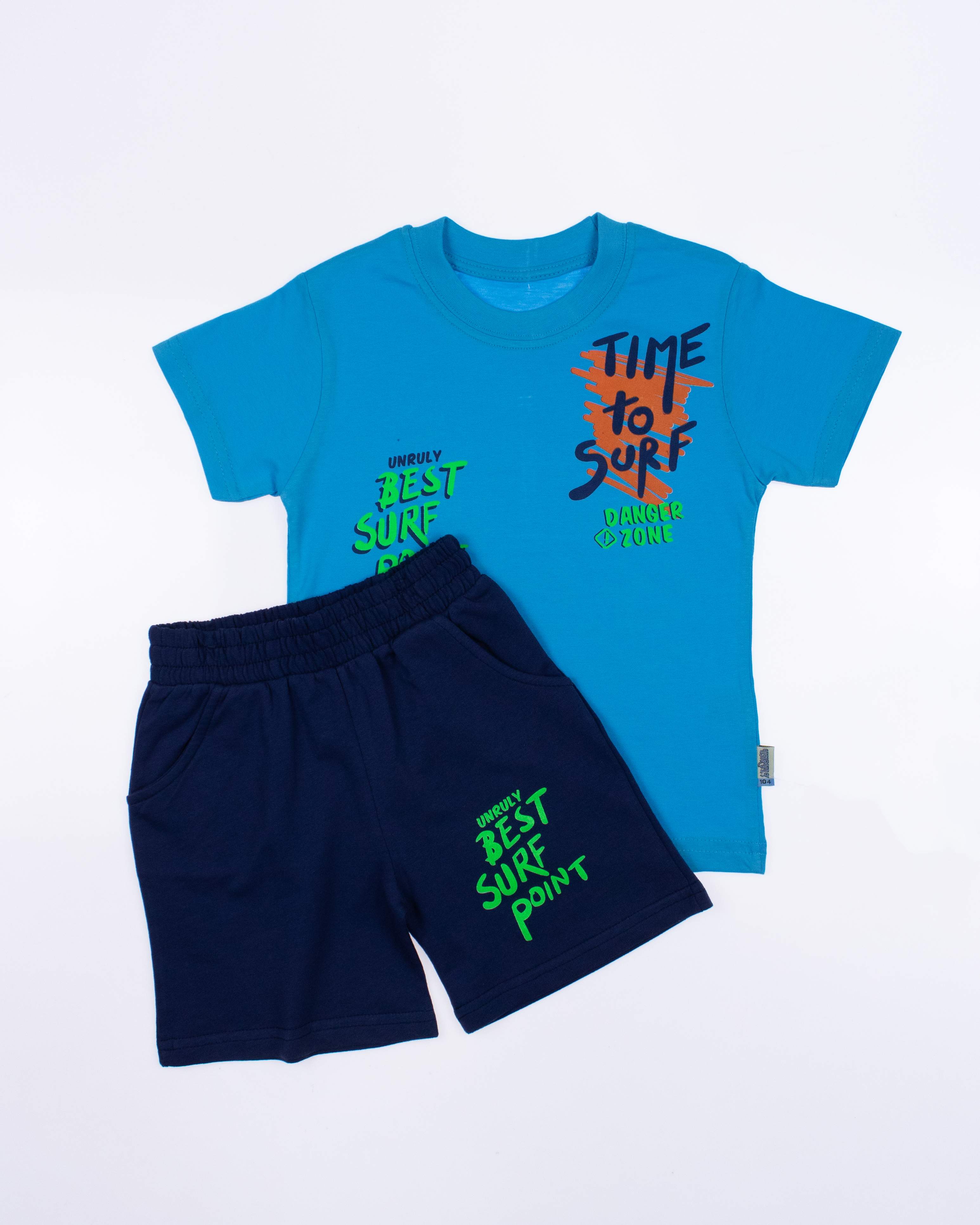 Детский костюм UNRULY выполнен из хлопкового полотна и оформлен печатным принтом. Футболка прямого кроя, с округлым вырезом горловины. Шорты умеренного объема, по бокам два вместительных  кармана.