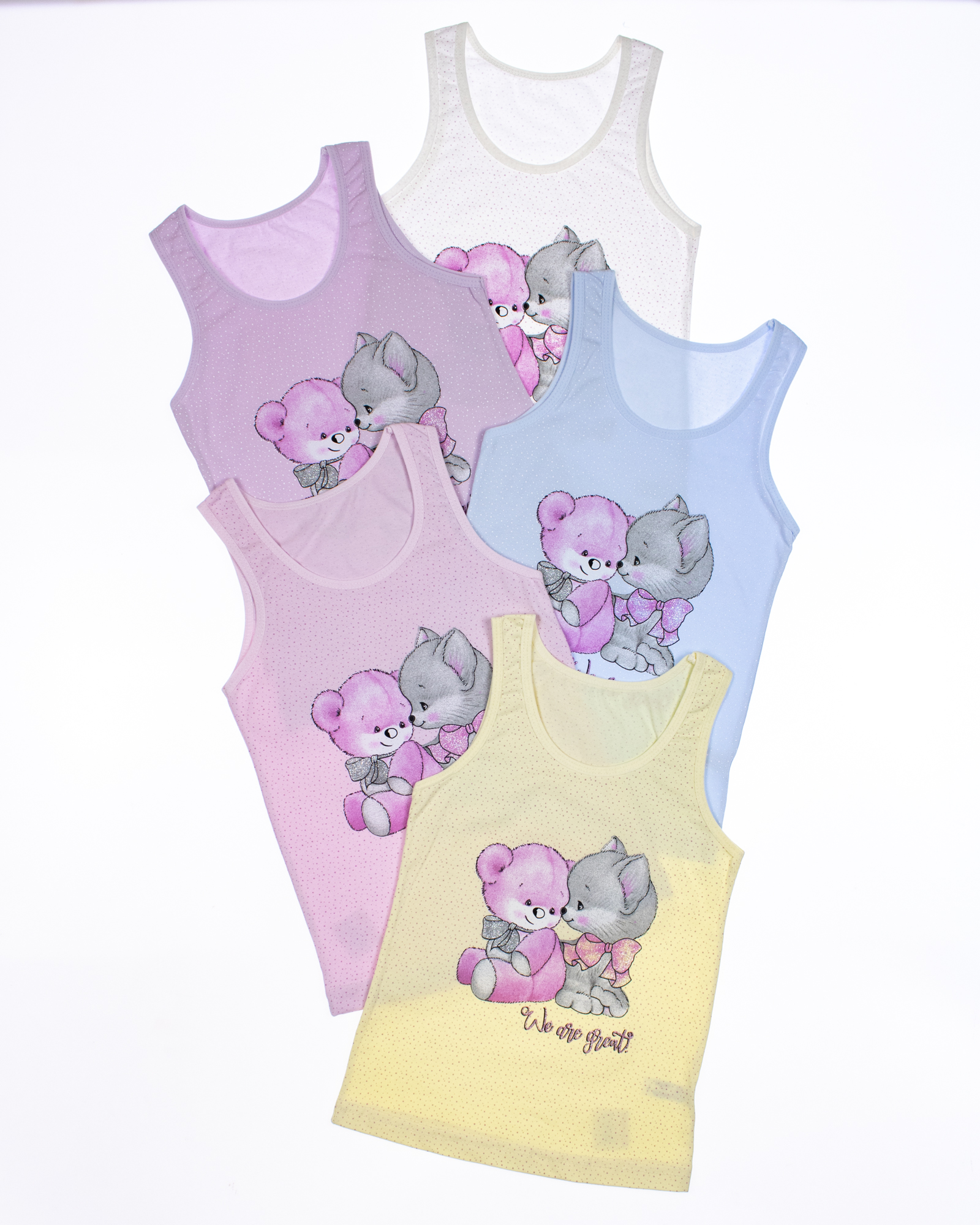 Однотонные майки Donella оптом для девочек, выполнены из нежной и шелковистой кулирки-это новый уровень комфорта!  Майки для детей классического кроя подойдут на все случаи жизни: в путешествие и на дачу, для дома и на прогулку, для сна и активного отдыха. Детские майки для девочки - важнейший предмет одежды для дома, к выбору которой стоит относиться ответственно. Наш бельевой трикотаж не теряет форму после стирки, не лопаются резинки, не распускаются нитки на манжетах, рисунок не выцветает. Мы предлагаем майки для девочки только самого лучшего качества.